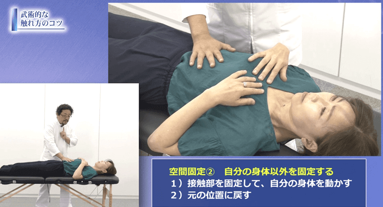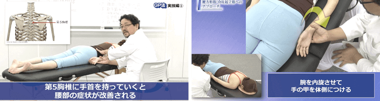 筋肉や骨膜、内臓など場所を問わず緩めることができるのが特徴で、これまで腸腰筋や腋の下、胸椎や下部頸椎などを緩めるのに苦労していましたが、GP法で簡単に対処できるようになりました。
