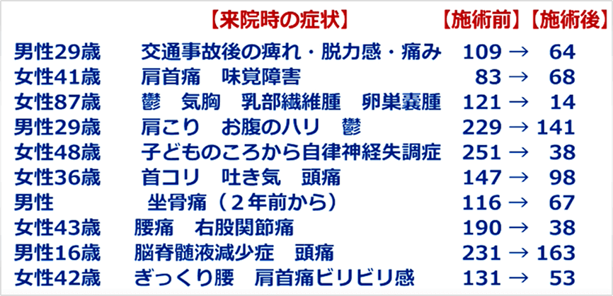 また、数十秒でコリがふにゃふにゃになるので、初めての患者さんのつかみにもとても重宝しています。 弱すぎるぐらいの低刺激なのに、身体がどんどん変化していくので「なんで~?」「不思議!」と笑いだす人が多く、それくらい、どんどん身体が変わっていきます!