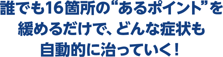 伊藤先生が研究に研究を重ねて導き出したこの16のポイントは、これを指標に緩めていくだけで、どんな症状も自動的に治っていきます。