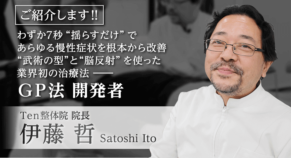 私もいろいろな整体法を勉強してきましたが、その中でも、今は即効性と再現性の高いGP法をメインに使っています。
